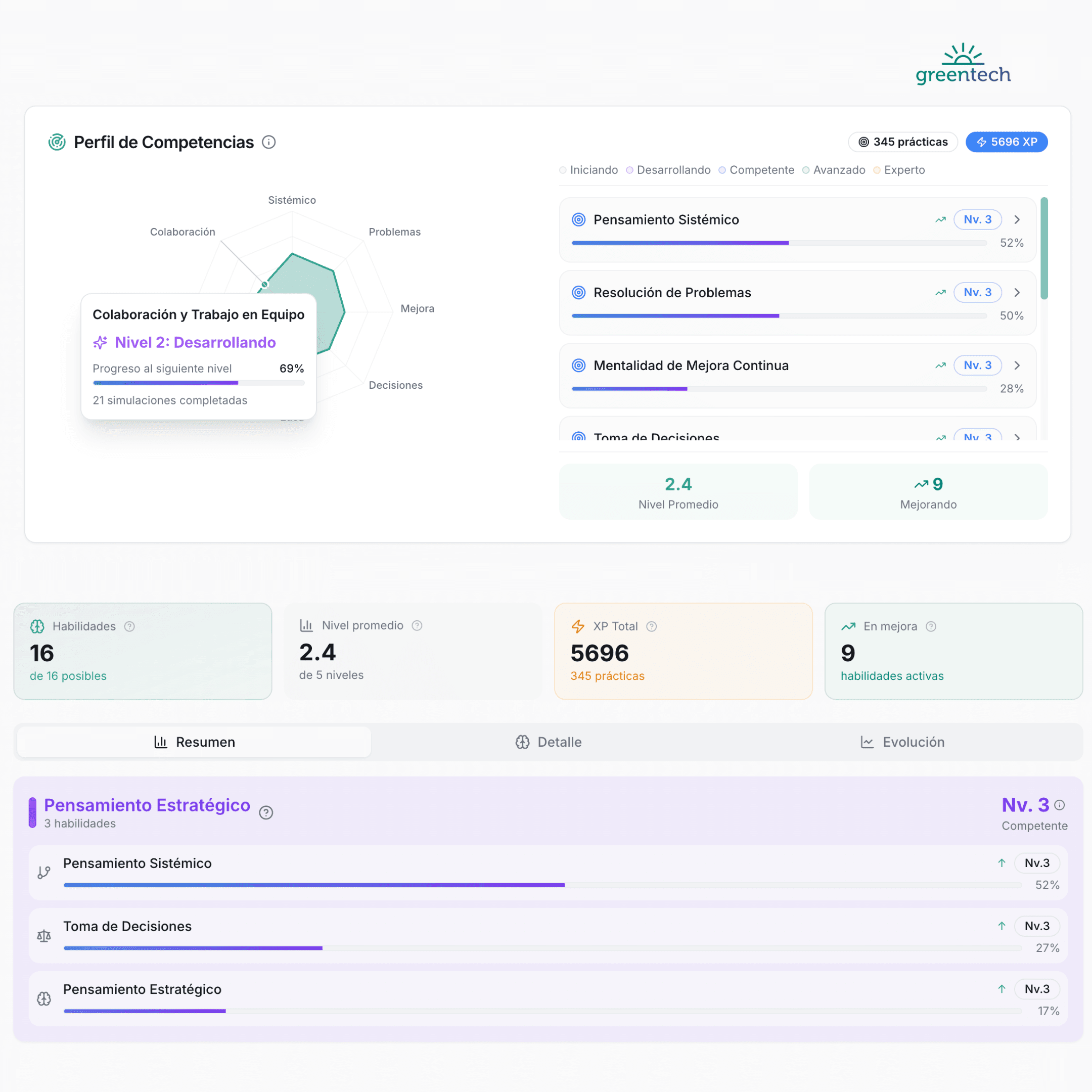 Eso también explica por qué Greentech lo presenta como una innovación regional. No es una promesa abstracta. Es una estructura concreta que combina simulaciones, métricas de evolución, empleabilidad y networking, con una capa tecnológica que potencia el proceso. En términos de transformación digital personal, es un sistema que busca que cada persona pase de consumir información a construir capacidades verificables.